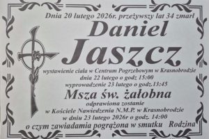 Zarząd Okręgowy PZŁ w Zamościu z przykrością informuje, że w dniu 20 lutego 2026 r. do krainy wiecznych łowów odszedł nasz Kolega, Myśliwy i Przyjaciel Daniel Jaszcz, członek Wojskowego Koła Łowieckiego Nr 121 „ŚWIT” w Zamościu.